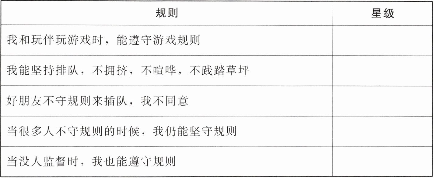 |我和玩伴玩游戏时,能遵守游戏规则|☆☆☆|