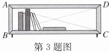 3. 如图,为了检查形状为平行四边形的书架$ABCD$的侧边是否与上、下边都垂直,工人师傅用一根绳子比较了其对角线$AC$,$BD$的长度,若二者长度相等,则该书架的侧边与上、下边都垂直,工人这样判断的主要依据是