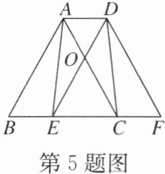 5. 如图,在$\triangle ABC$中,$AB = AC$。将$\triangle ABC$沿着$BC$方向平移得到$\triangle DEF$,其中点$E$在边$BC$上,$DE$与$AC$相交于点$O$。连接$AE$,$DC$,$AD$,当点$E$为