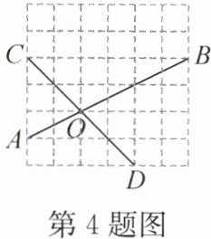 4. 在如图的正方形方格纸中,每个小的四边形都是相同的正方形,点 $ A $,$ B $,$ C $,$ D $ 都在格点处,$ AB $ 与 $ CD $ 相交于点 $ O $,则 $ \tan \angle AOC $ 的值为
