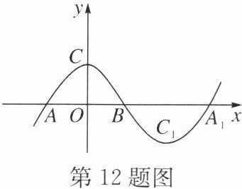 12. 如图,二次函数 $ m: y = ax^2 + b (a < 0, b > 0) $ 的图象与 $ x $ 轴交于点 $ A $,$ B $(点 $ A $ 在点 $ B $ 的左侧),与 $ y $ 轴交于点 $ C $。将二次函数 $ m $ 的图象绕点 $ B $ 旋转 $ 180° $,得到新的二次函数 $ n $ 的图象,它的顶点为 $ C_1 $,与 $ x $ 轴的另一个交点为 $ A_1 $。若四边形 $ AC_1A_1C $ 为矩形,则 $ a $,$ b $ 应满足的关系式为(