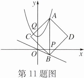 11. 如图,在直角坐标系中,过点 $ P(x, 0) $ 作 $ x $ 轴的垂线分别交二次函数 $ y = x^2 + 2 $ 的图象与直线 $ y = -\frac{1}{2}x $ 于 $ A $,$ B $ 两点,以线段 $ AB $ 为对角线作正方形 $ ADBC $,已知点 $ Q(a, b) $ 为该二次函数图象上的点。