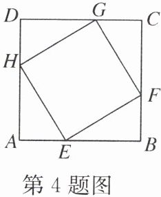 4. 如图,四边形 $ ABCD $ 是正方形,$ AB = 6 $,四边形 $ EFGH $ 也是正方形. 点 $ E $,$ F $,$ G $,$ H $ 分别位于正方形 $ ABCD $ 的四条边上. 点 $ E $ 在 $ AB $ 边上移动时,正方形 $ EFGH $ 面积也随之改变,当 $ AE $ 的长度为多少时,正方形 $ EFGH $ 的面积最小?并求出最小面积.