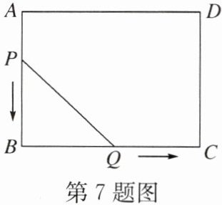 7. 如图,在矩形 $ ABCD $ 中,$ AB = 6 \, cm $,$ BC = 8 \, cm $,点 $ P $ 从点 $ A $ 开始沿边 $ AB $ 向终点 $ B $ 以 $ 1 \, cm/s $ 的速度移动,与此同时,点 $ Q $ 从点 $ B $ 开始沿边 $ BC $ 向终点 $ C $ 以 $ 2 \, cm/s $ 的速度移动. 如果点 $ P $,$ Q $ 分别从点 $ A $,$ B $ 同时出发,当点 $ Q $ 运动到点 $ C $ 时,两点停止运动,设运动时间为 $ t \, s $.