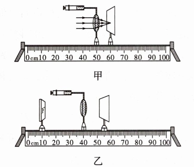 (1)如图甲所示,让一束平行于主光轴的光射向水凸透镜,在光屏上出现一个最小最亮的光斑,则此水凸透镜的焦距为
