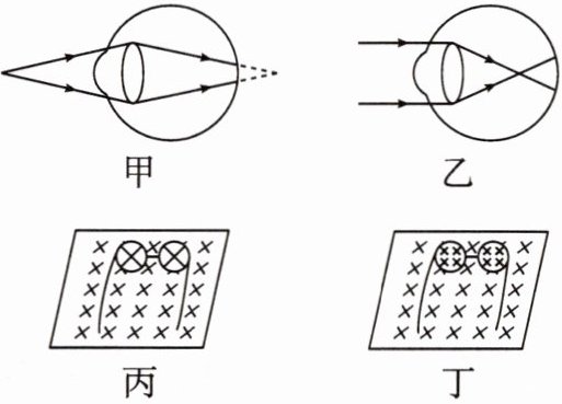 (选填“甲”或“乙”)图表示近视眼成像原理,应佩戴丁