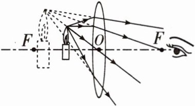 3. 如图是凸透镜成虚像的情景,欲使看到的像大一些,应使蜡烛
