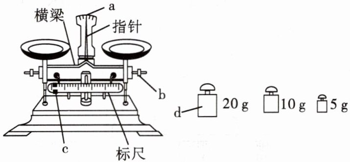 (1)a.分度盘 b.平衡螺母 c.游码 d.砝码