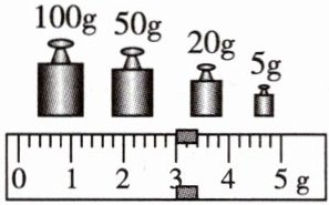 (2)测量铜线质量时,天平平衡后,右盘中砝码的质量和游码的位置如图所示,则该卷铜线的质量$m = $______ $g$,铜线的长度$l = $______ $cm$。