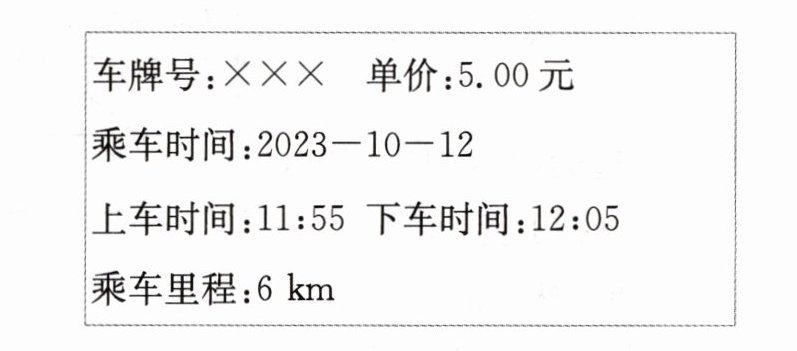 1. 小明从学校乘坐出租车回家,如图是他乘车到达家的出租车费发票。求: