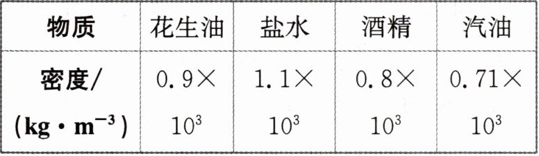 2. 一个瓶子最多能装下 $500\ g$ 水,则这个瓶子能装下 $500\ g$ 的下列哪些物质(