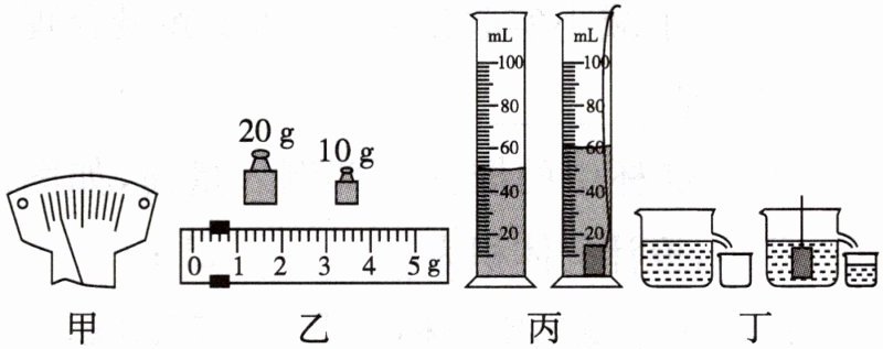(3)B 实验小组在检查实验器材时,发现实验桌上没有量筒,于是他们设计了一个不用量筒也能测量矿石体积的方法,如图丁所示,测量步骤如下:
