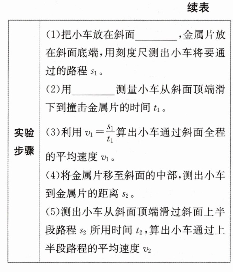 (选填“$>$”“$=$”或“$<$”)$v_2$。(5)实验中全程平均速度$v_{AC}$,上半程的平均速度$v_{AB}$,下半程的平均速度$v_{BC}$,三者中最大的是