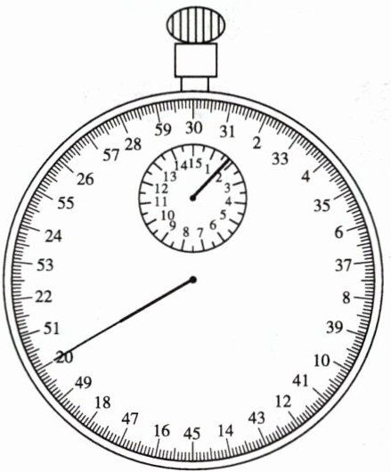 s。小表盘指针在1和2之间,大表盘指针指向20。