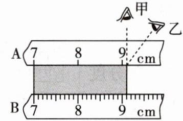 cm。A刻度尺测量范围7 - 9cm,B刻度尺测量范围7 - 9cm,物体一端对齐7cm,另一端对齐9cm。