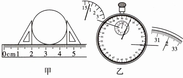 乙图:小表盘指针在0和1之间,大表盘指针指向31.8s。