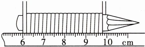 10. 某同学将一段细铜丝在一支铅笔上单层缠绕了20圈,形成一个铜丝圈,再用一把刻度尺测量该铜丝圈的长度,测量情况如图所示。