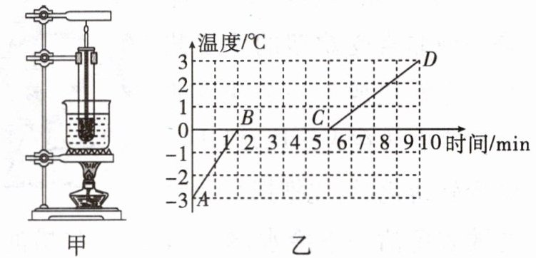 (选填“碎冰块”或“体积较大的冰块”)。(4)实验中每隔1 min记录一次物质的温度,同时观察试管中该物质状态变化,记录数据,作出温度随时间变化的规律图像,如图乙所示,由图像可知:该物质在熔化过程中温度