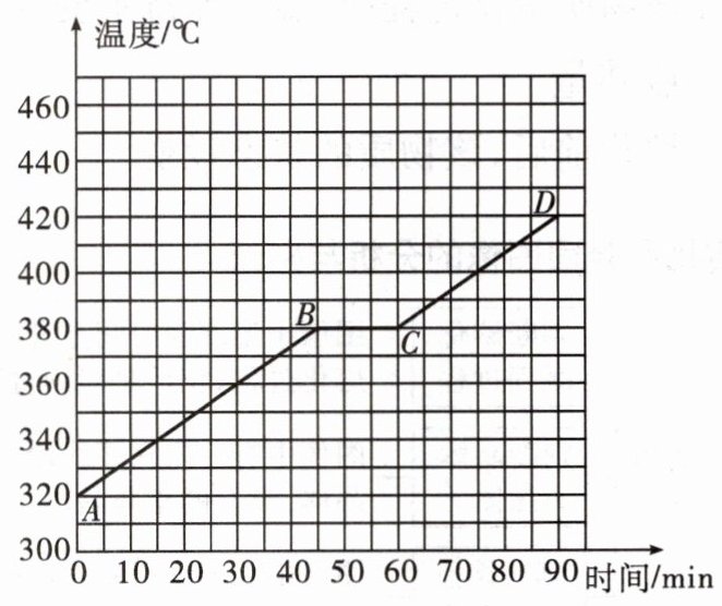 8. 中国某科研单位研制了一种特殊用途的合金,代号T,现对1 kg合金T连续不断进行加热,温度随时间变化的图像如图,根据图像回答:
