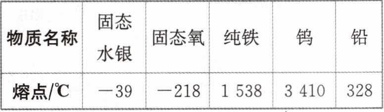 5. 下表中列出了几种物质的熔点(在标准大气压下)