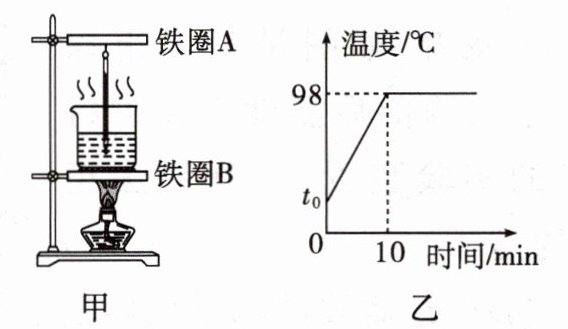 (选填“A”或“B”)。(2)用酒精灯对水加热时,烧杯上方有“白气”产生,这是