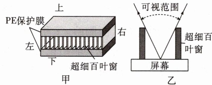 7. (2025成都简阳市实验学校期中)如图甲为手机防窥膜结构图,采用了超细百叶窗光学技术。贴在手机屏幕上的效果如图乙所示,其原理类似百叶窗,两侧之所以看不清屏幕内容,其原理是光的