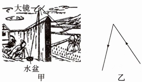 9. 汉代《淮南万毕术》中记载:“取大镜高悬,置水盆于下,则见四邻矣。”其场景如图甲所示。请在图乙中通过作图画出“大镜”的位置。