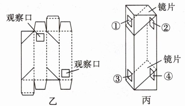 (2)图丙中两块镜片是____(选填“玻璃板”或“平面镜”),镜面是____(选填“相对”或“相背”)放置的。