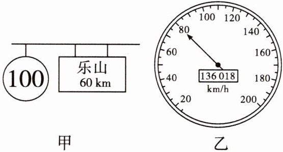 (1)在不违规的前提下,若汽车以最快的速度行驶,从图甲的指示牌到乐山至少需要的时间。
