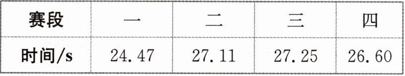 变式1 某运动员在奥运会上夺得自由泳200 m金牌,以每50 m为一个赛段,他在四个赛段的成绩如表所示。在此次比赛中,他运动最快的赛段是(