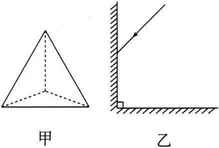 4. (2024 泸州)如图甲所示是随嫦娥六号一起发射的角反射器的示意图,其三个反射面相互垂直,其中两个反射面如图乙所示,一束光只在这两个反射面发生了反射,请在图乙中画出这束光反射的光路图(保留作图痕迹)。