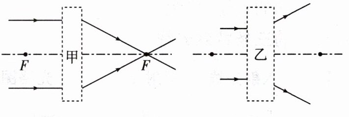 变式 1 虚线框内各放有一个透镜,两束光通过透镜前后的方向如图所示,则(