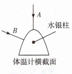 10. 常用体温计的刻度部分为三棱体,横截面如图所示,其中一面呈圆弧形,进行读数时,若分别沿$A$、$B$方向观察,其中沿