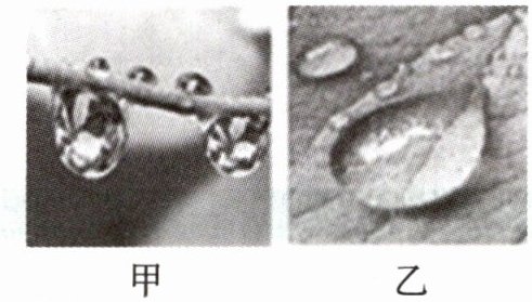 6. 我们常常会看到树枝和树叶上有一些水珠,如图所示,甲图中看到水珠后面远处景物是倒立的;乙图中透过树叶上的水珠观察到树叶清晰的叶脉。下列说法正确的是(
