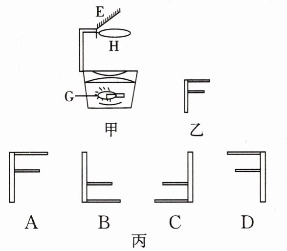 ;使用此投影仪时,小明把图乙的投影片放在投影仪的载物台上,则在屏幕上得到的图形与图丙中C
