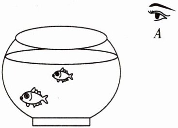 12. 如图,鱼缸中只有一条小鱼,而眼睛从$A$点可以观察到两条,一条鱼的位置变浅,另一条鱼变大,前者是由于