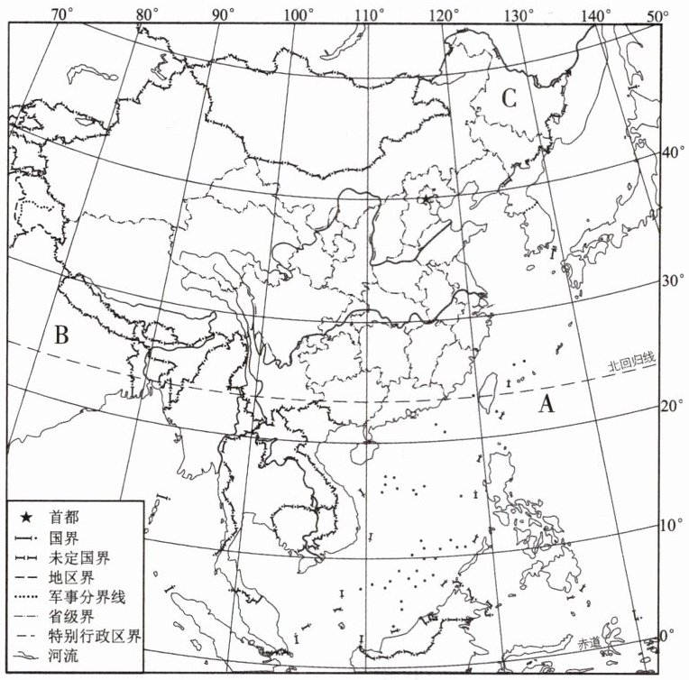 材料二 下图为中国疆域示意图。