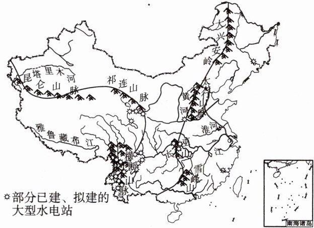 下图为我国地势三级阶梯及部分大型水电站分布示意图。