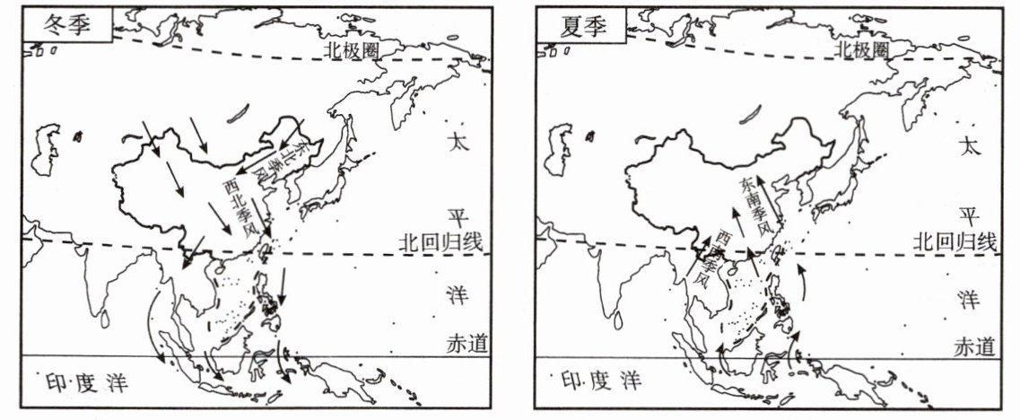 在我国东部季风气候区内部,受纬度位置影响,自北向南,接收的太阳光热逐步增加,气温越来越