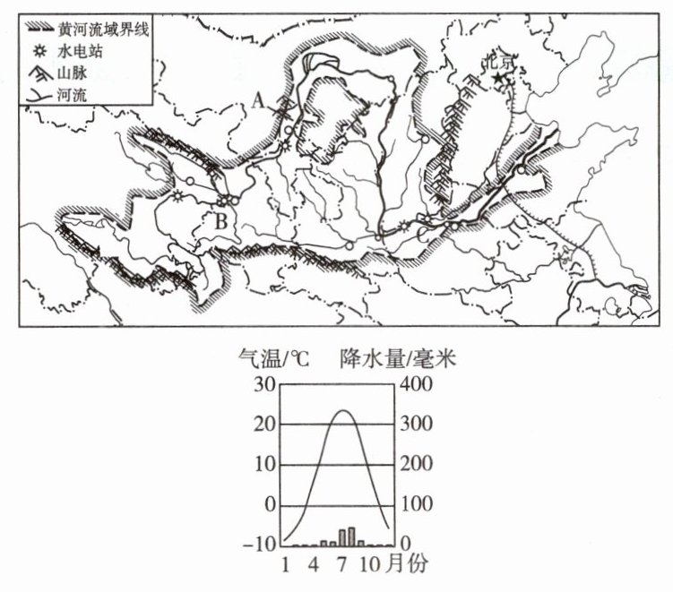 为了更好地了解和保护黄河,某校学生围绕不同主题展开对黄河的探究。下图为黄河流域示意图及A地的气候资料图。