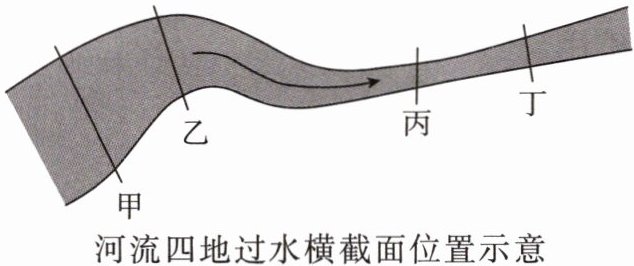 (1)河流的流速与过水横截面面积呈负相关。上图河流中,流速最快的是横截面