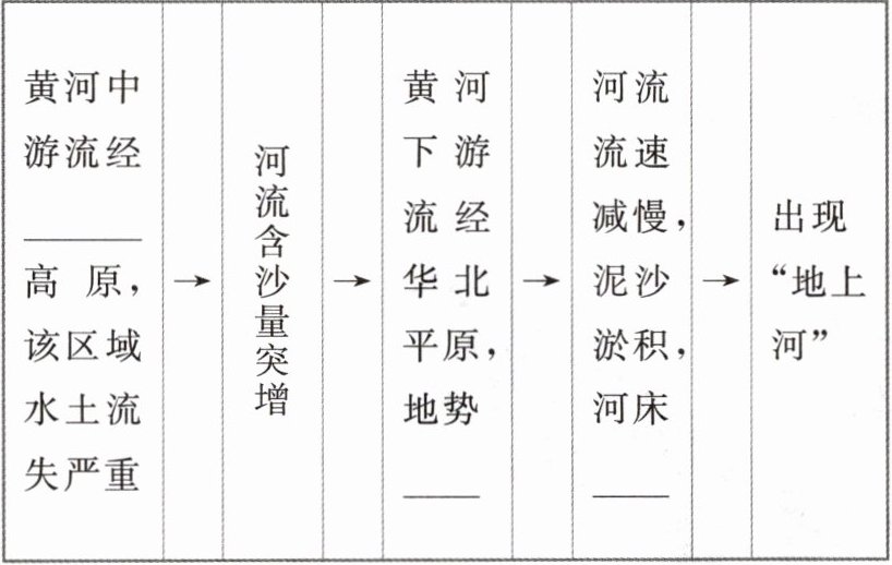 (3)根据所学的知识,梳理黄河“地上河”的形成过程: