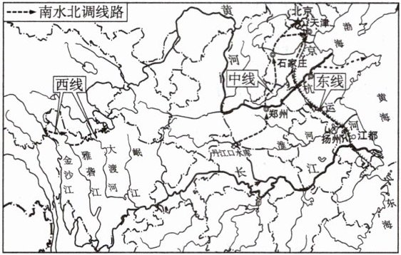 自2014年12月27日至今,“南水”进京已超十年。北京推出阶梯水价,即居民用水价格= 水费+水资源费+污水处理费。按年度用水量计算,划分为三档,水价分档递增。下图为南水北调工程线路示意图。读图,完成5~6题。