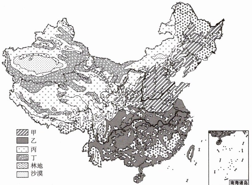 )A. 青藏高原区 B. 西北内陆地区 C. 东部季风区 D. 寒温带地区