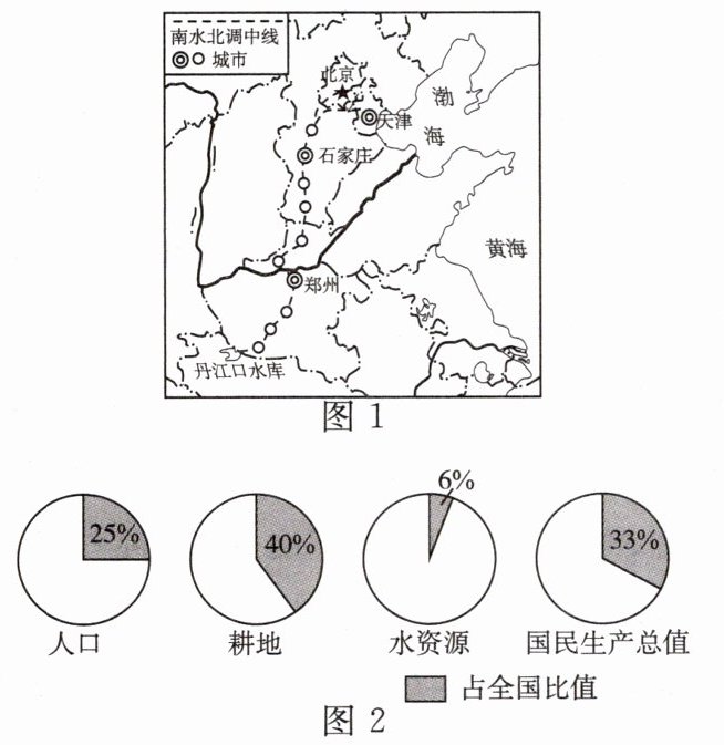 (2)根据图2判断,华北地区严重缺水的主要原因是(