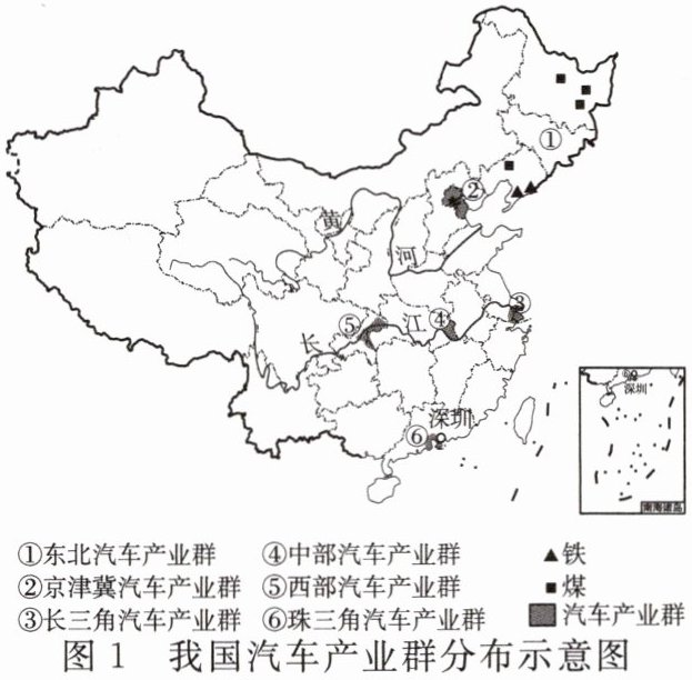 11. 人地协调观 汽车工业是国家综合国力的缩影,60多年来我国汽车工业从无到有,从弱到强。发展新能源汽车是我国应对气候变化、推动绿色发展的战略举措。截至2024年,我国新能源汽车产销量连续10年保持全球第一。阅读图文材料,完成下列问题。