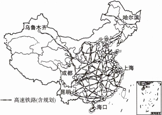 (1)读图概括我国高铁分布的特点,并从地形、人口、经济等方面简要分析原因。