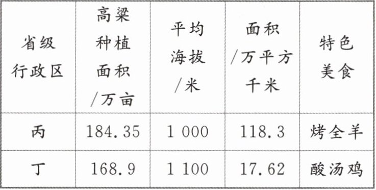 2. 丙省级行政区种植高粱的主要原因不包括(