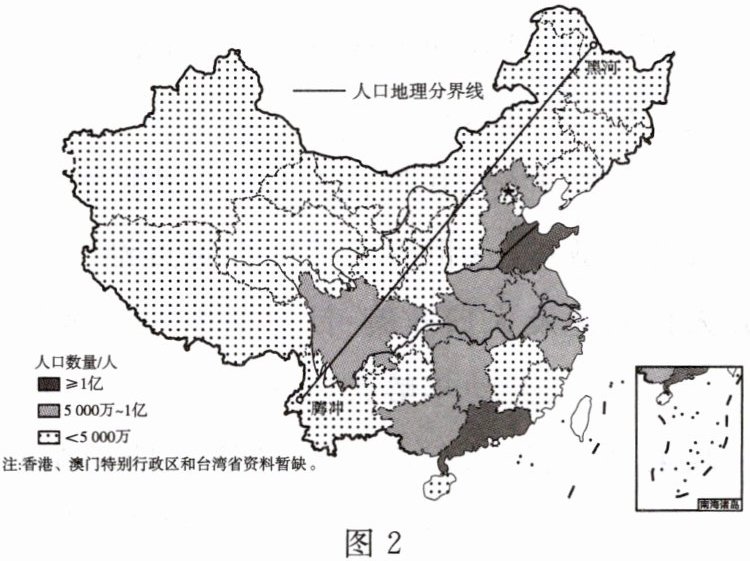 ,图中人口数量超过 1 亿的省级行政区的简称分别是鲁和粤