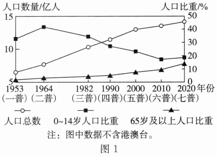 (1)据图 1 可知,中华人民共和国成立到 2020 年,我国人口总数持续